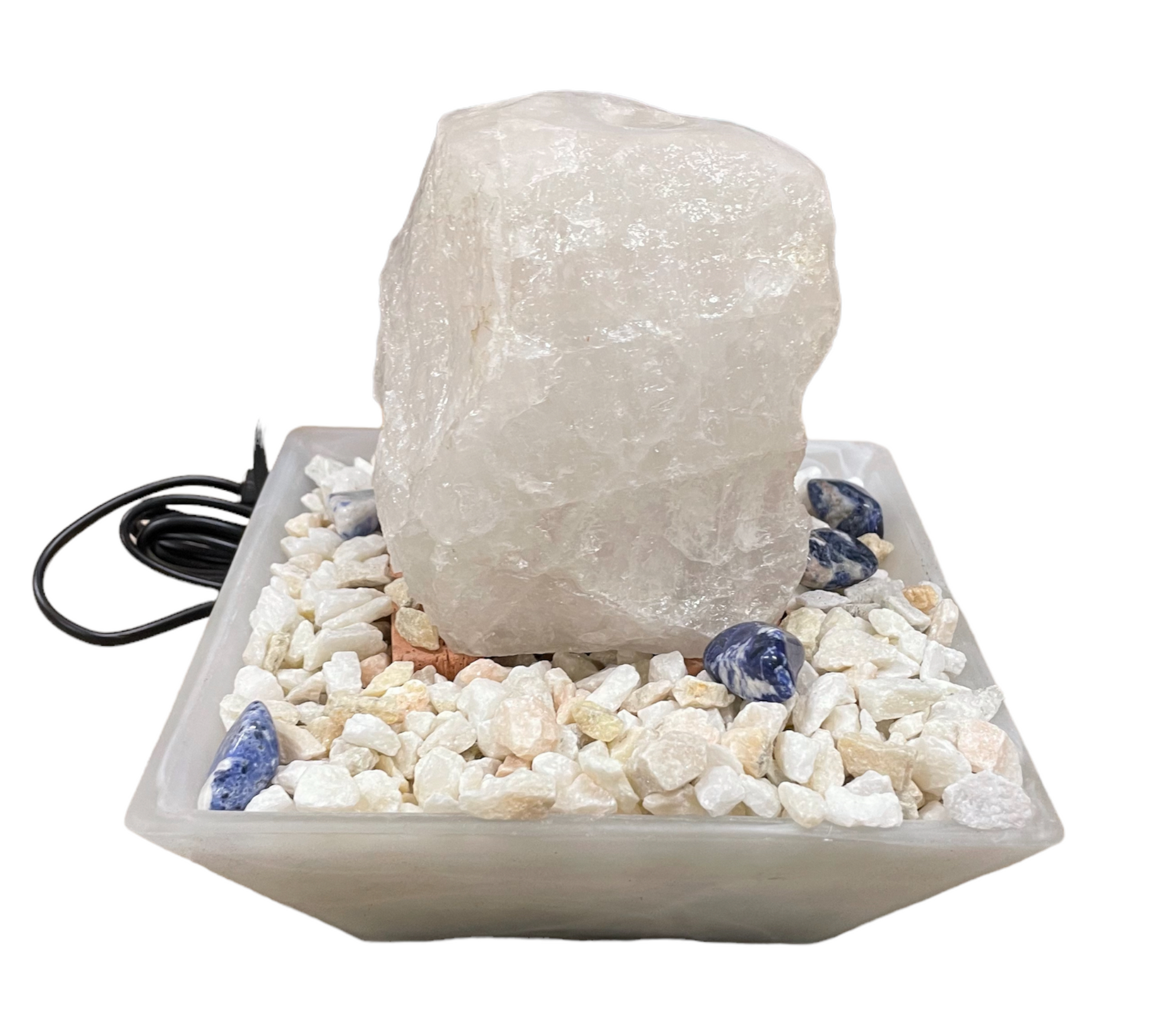 Skrautsteinar og dæla fylgja með.